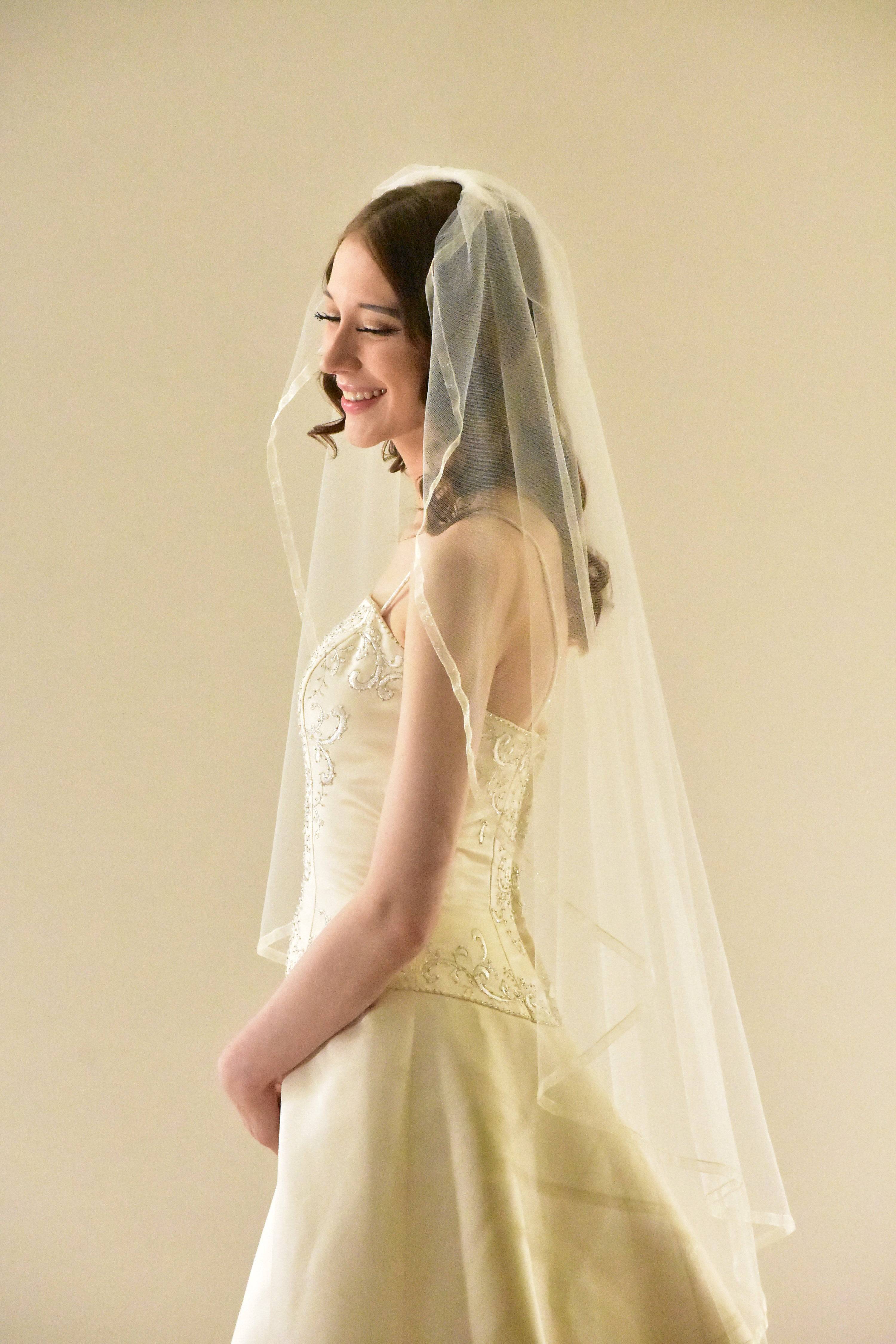 Angel Cut Fingertip Veil with Organza Ribbon Trim