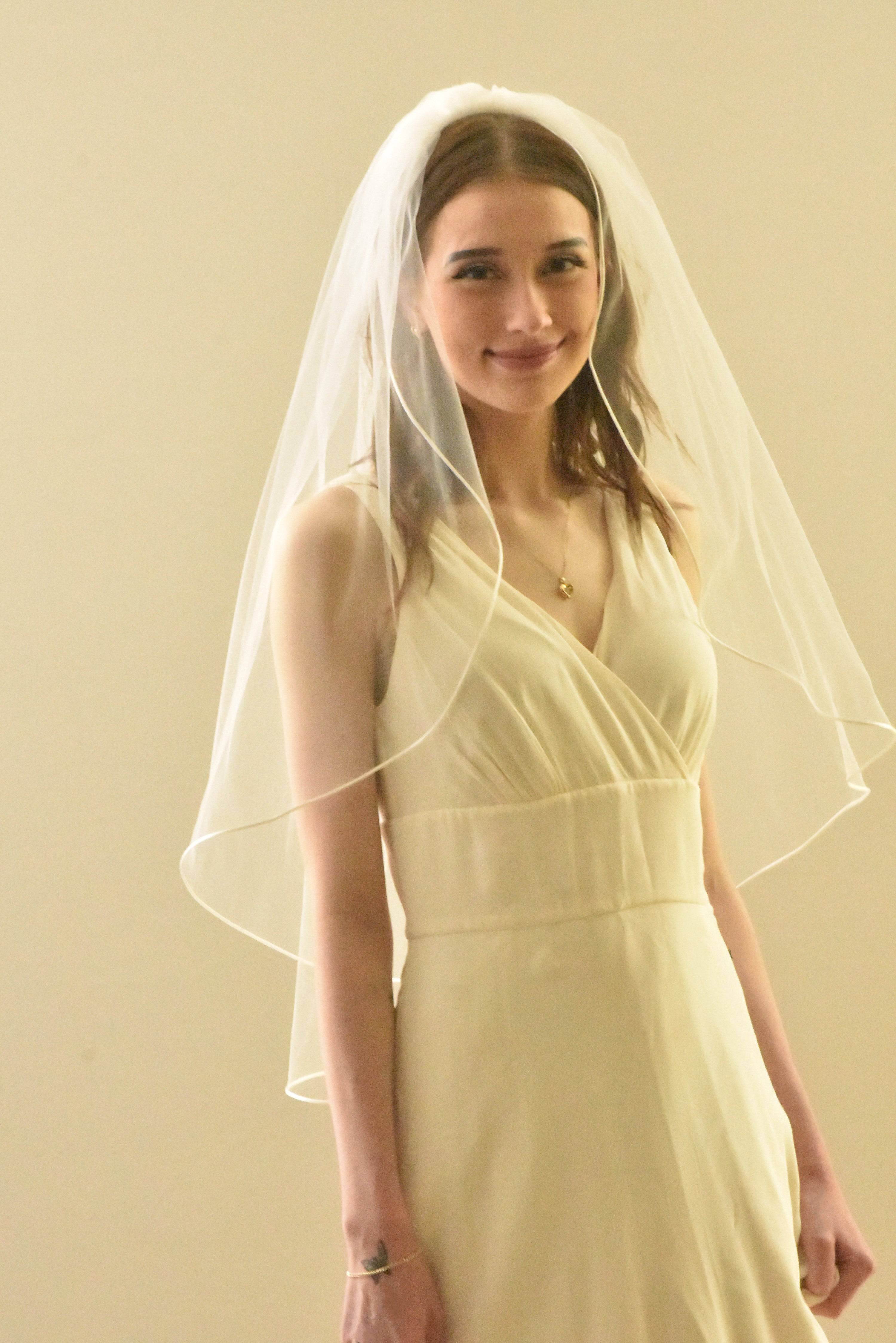 Classic Hip Length Veil with Satin Cord Edge
