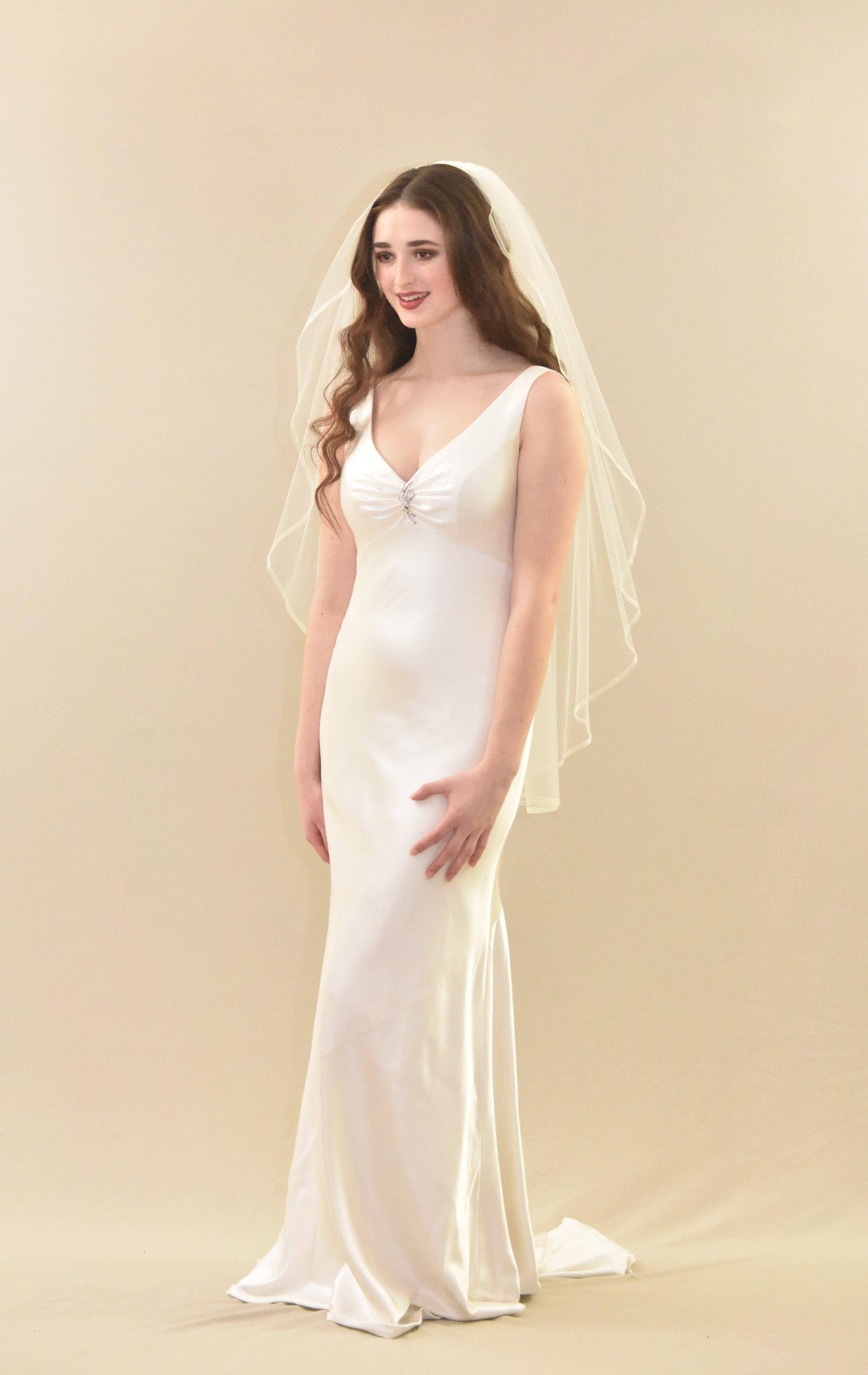 Single Tier Fingertip Length Veil with Thin Organza Ribbon Edge