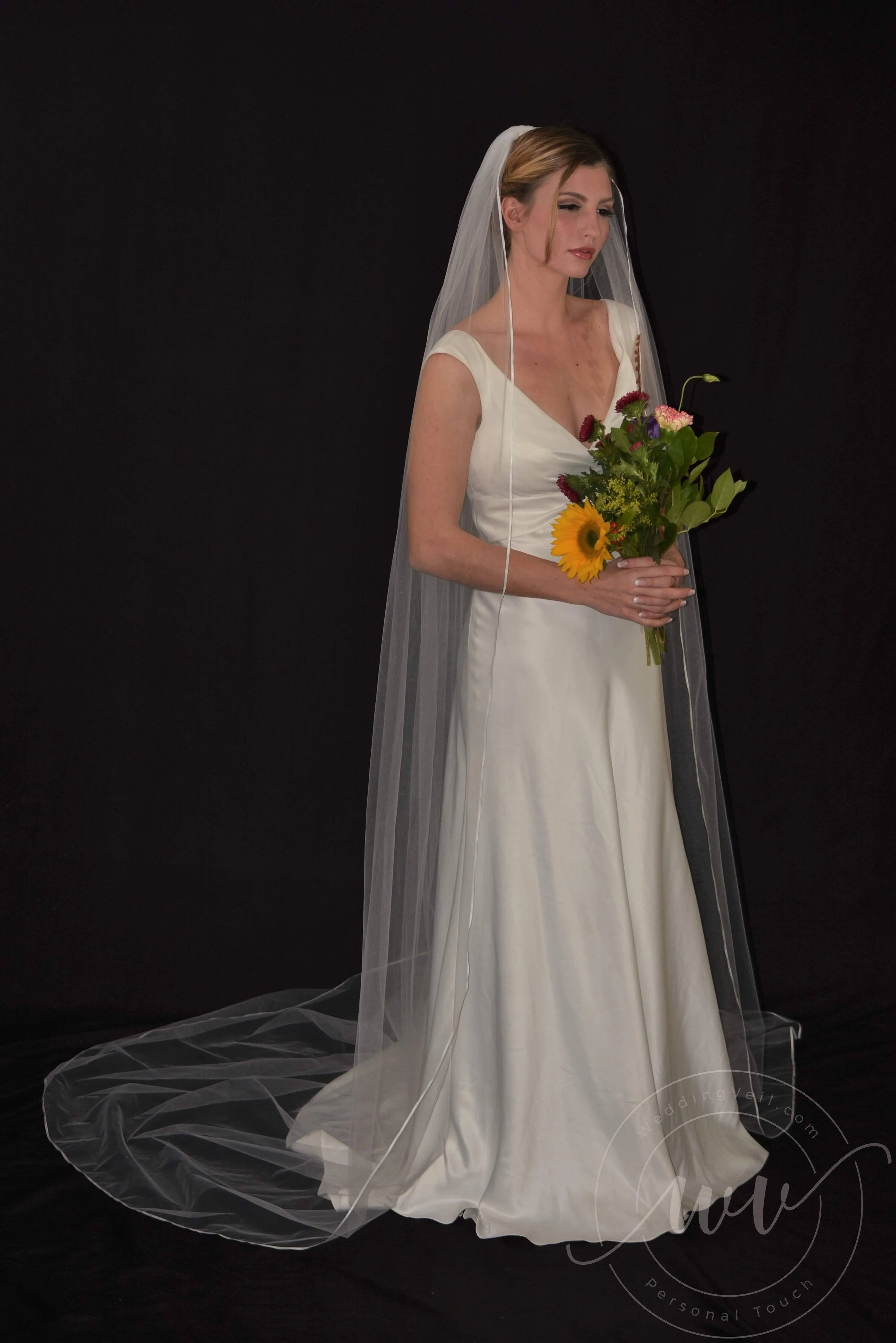 Full Volume Cathedral Veil with Thin Satin Ribbon Edge