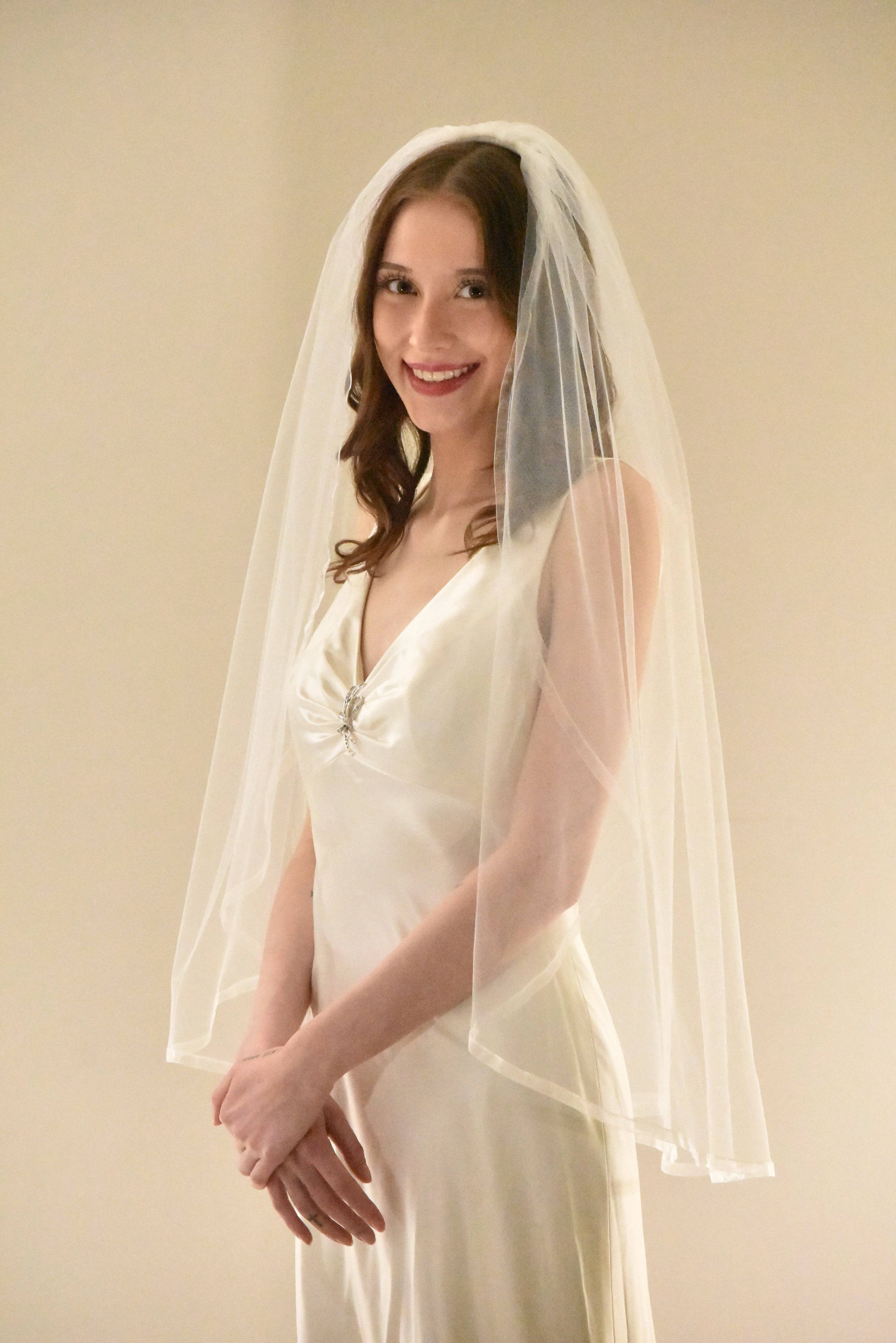 Single Tier Hip Length Veil with Organza Ribbon Edge