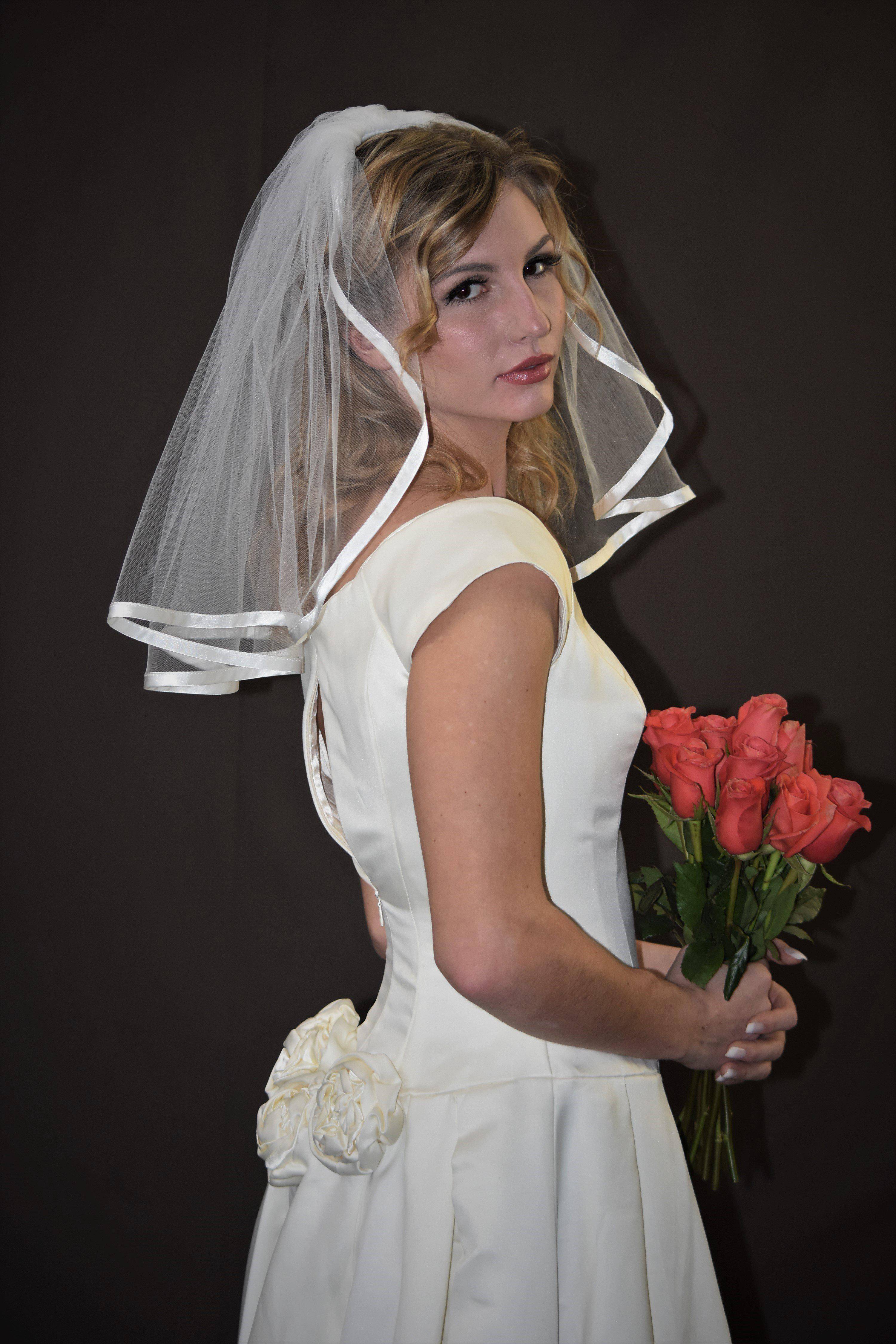 Single Tier 18" Flyaway Veil with 3/8" Satin Ribbon Edge