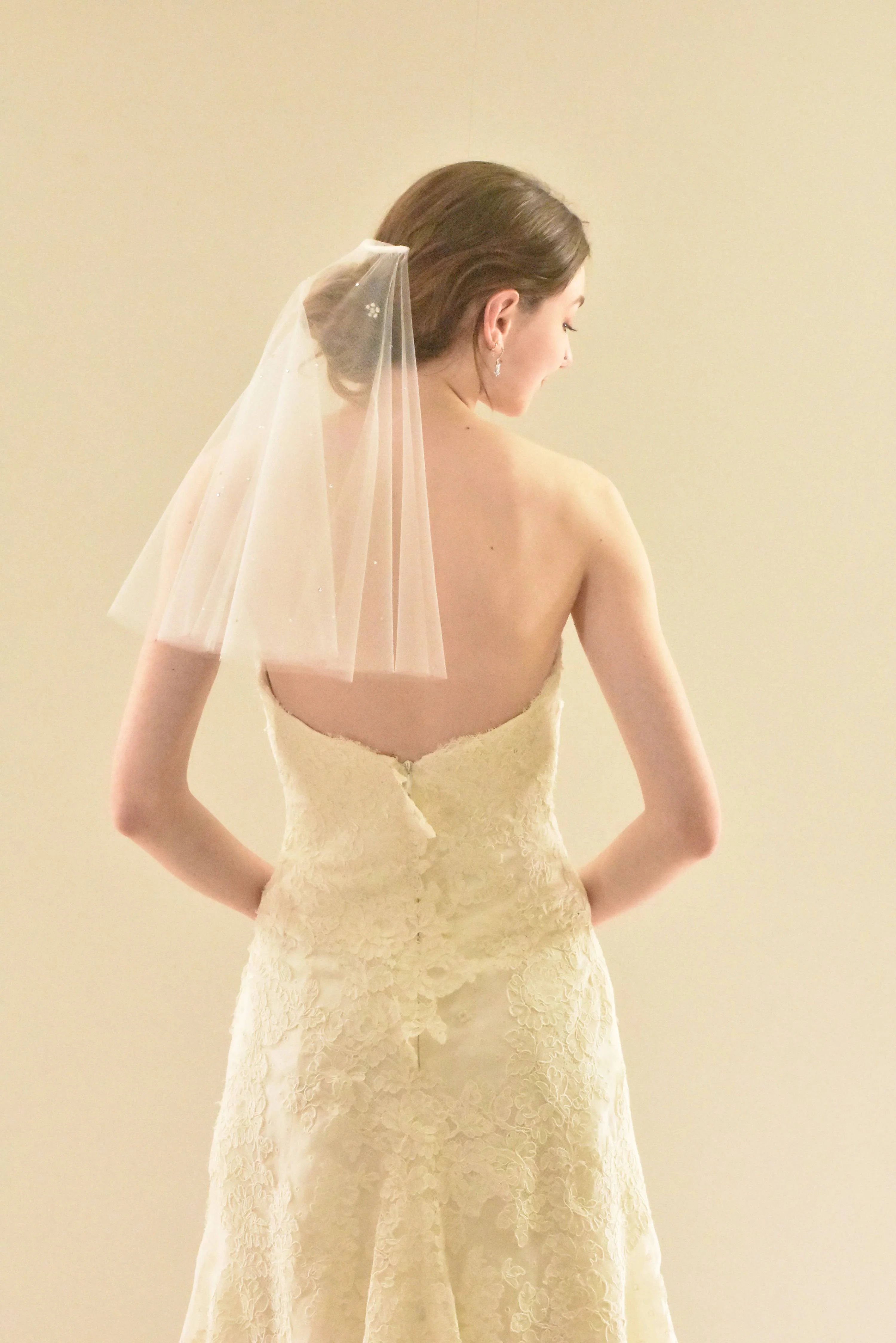 Shoulder Length Blusher Veil with Swarovski Crystals