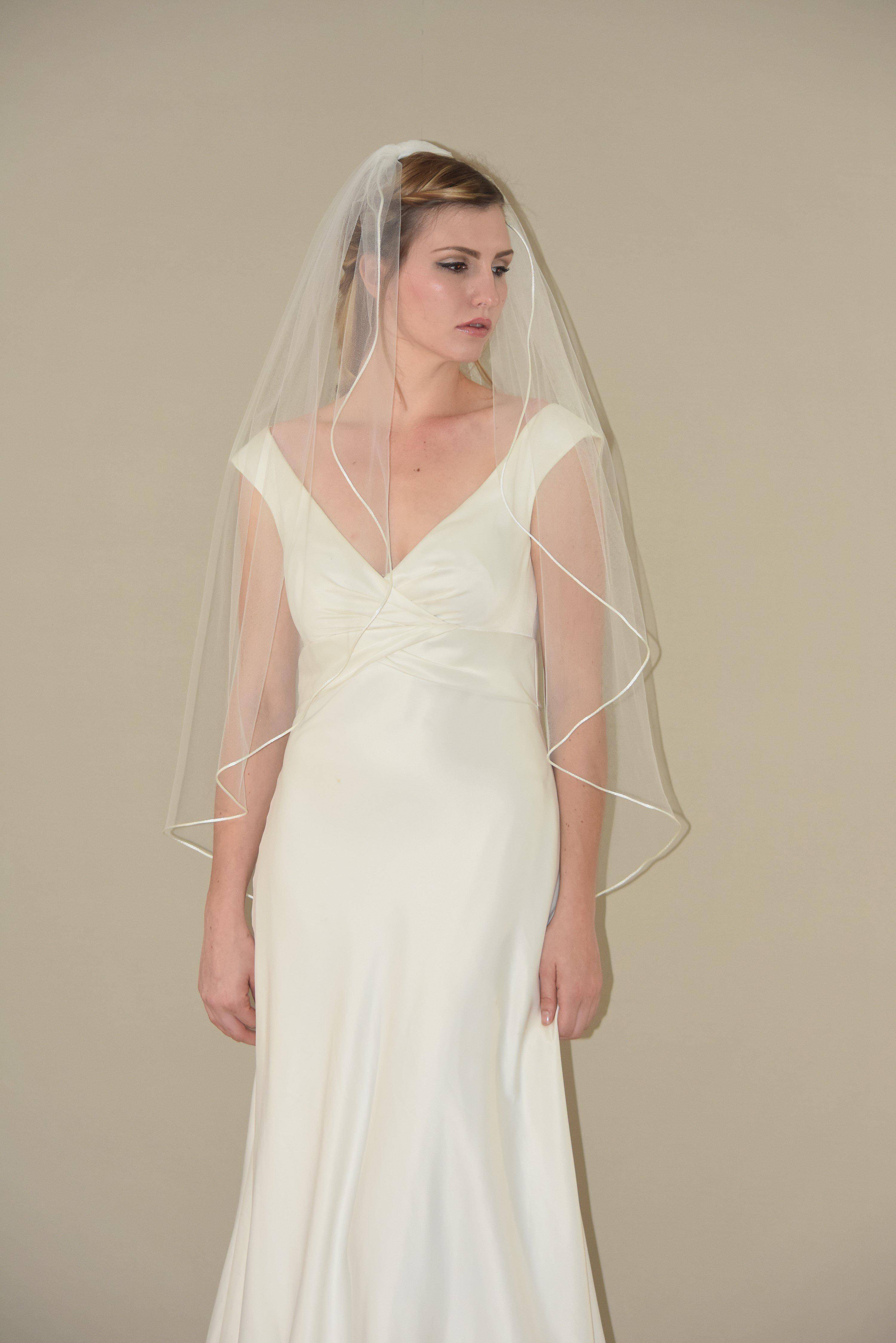 Single Tier 42" Fingertip Length Veil with Satin Cord Edge