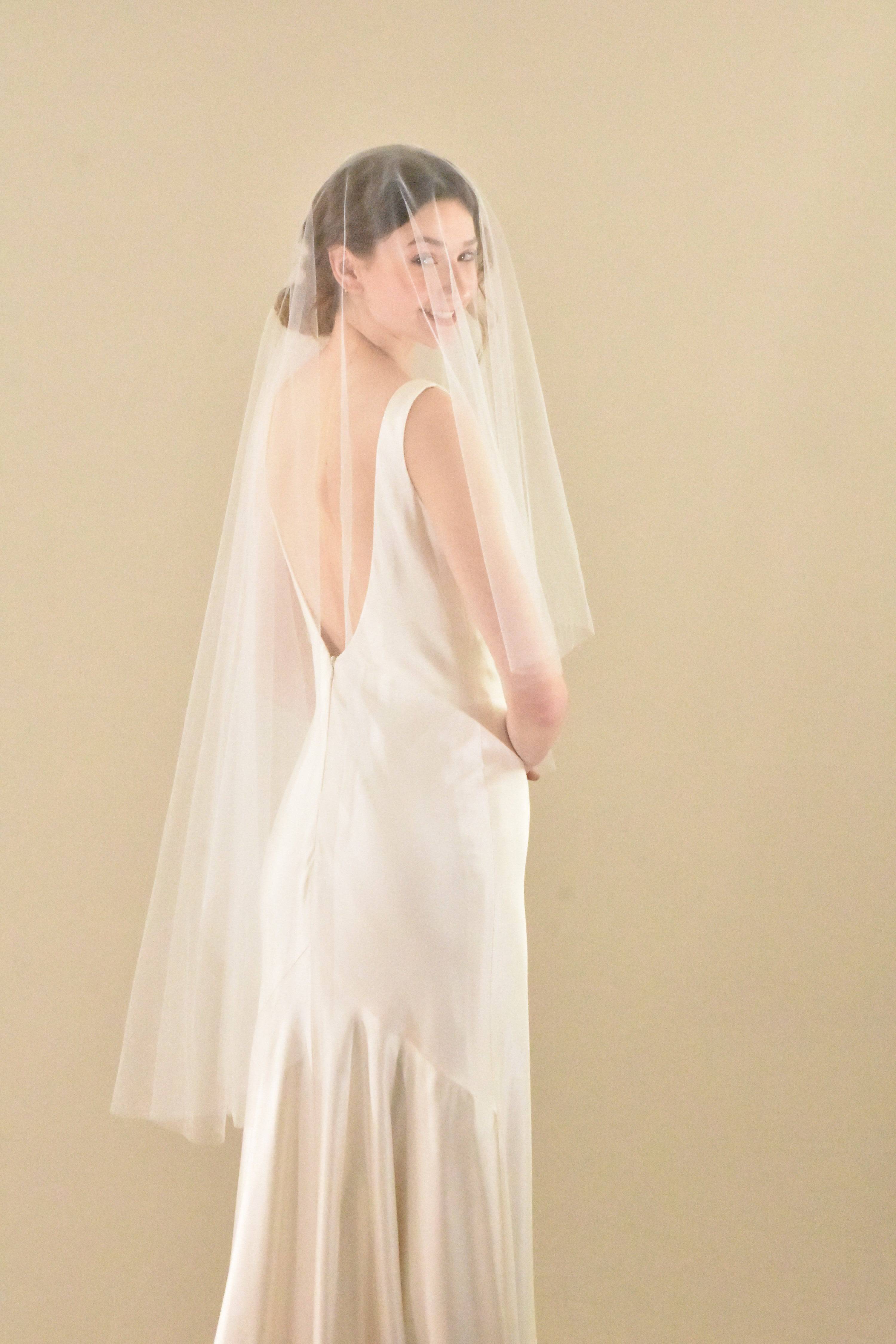 Simple Two Tier Fingertip Veil with Raw Cut Edge