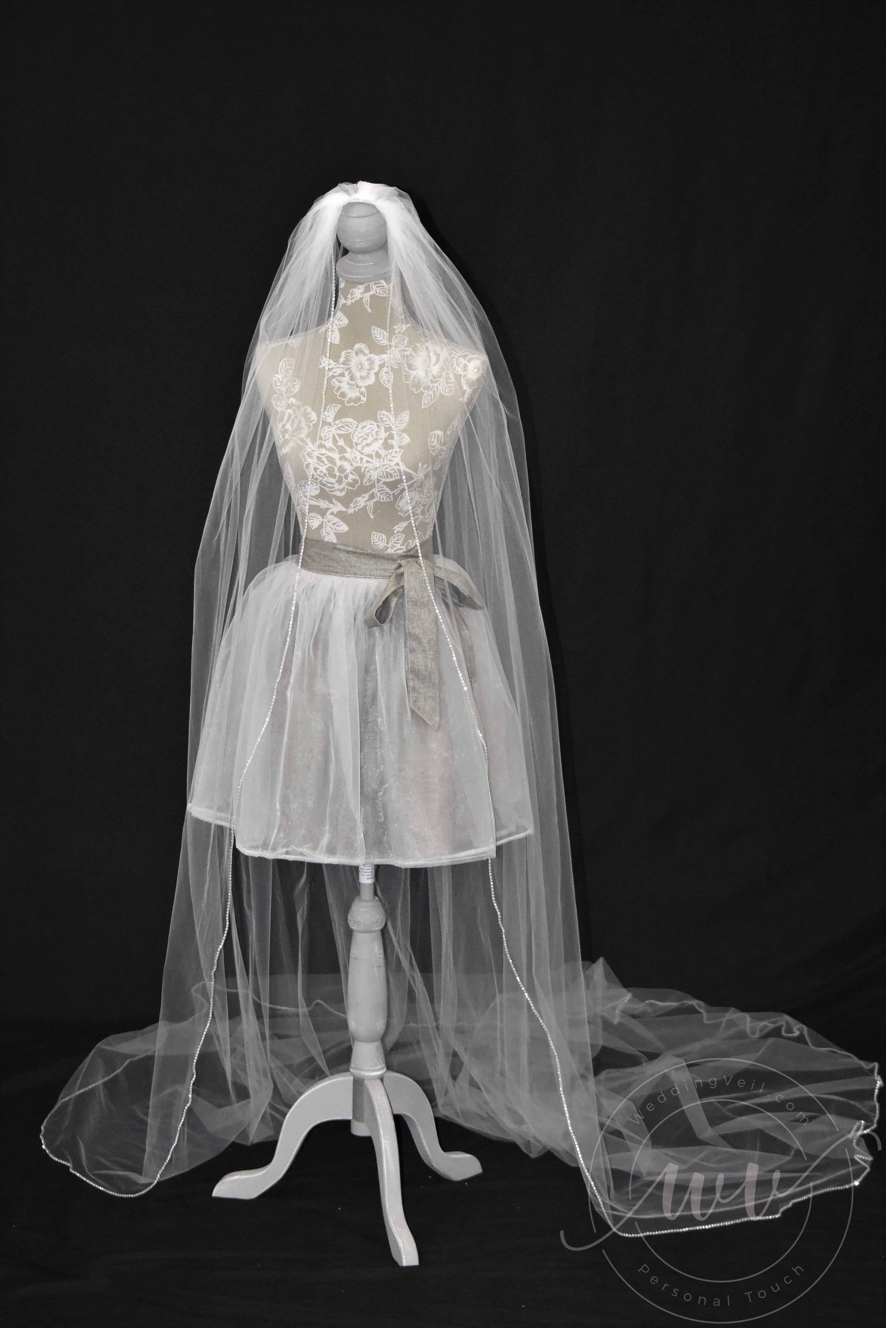 One of our best-selling cathedral veils. The sparkly edging definitely creates the luxurious shine on your special day.