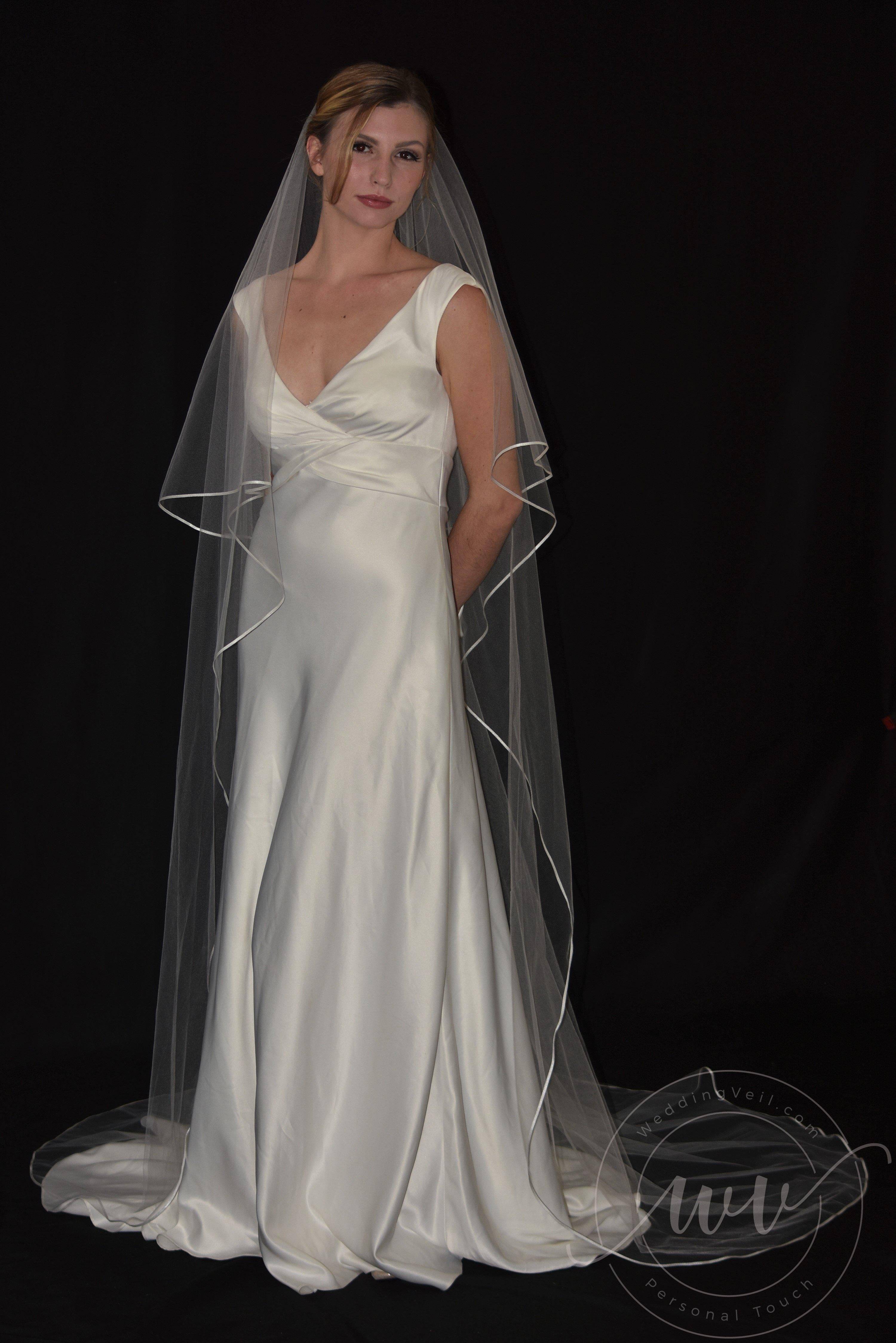 Two Tier Cathedral Length Veil with 1/8" Thin Satin Ribbon Edge