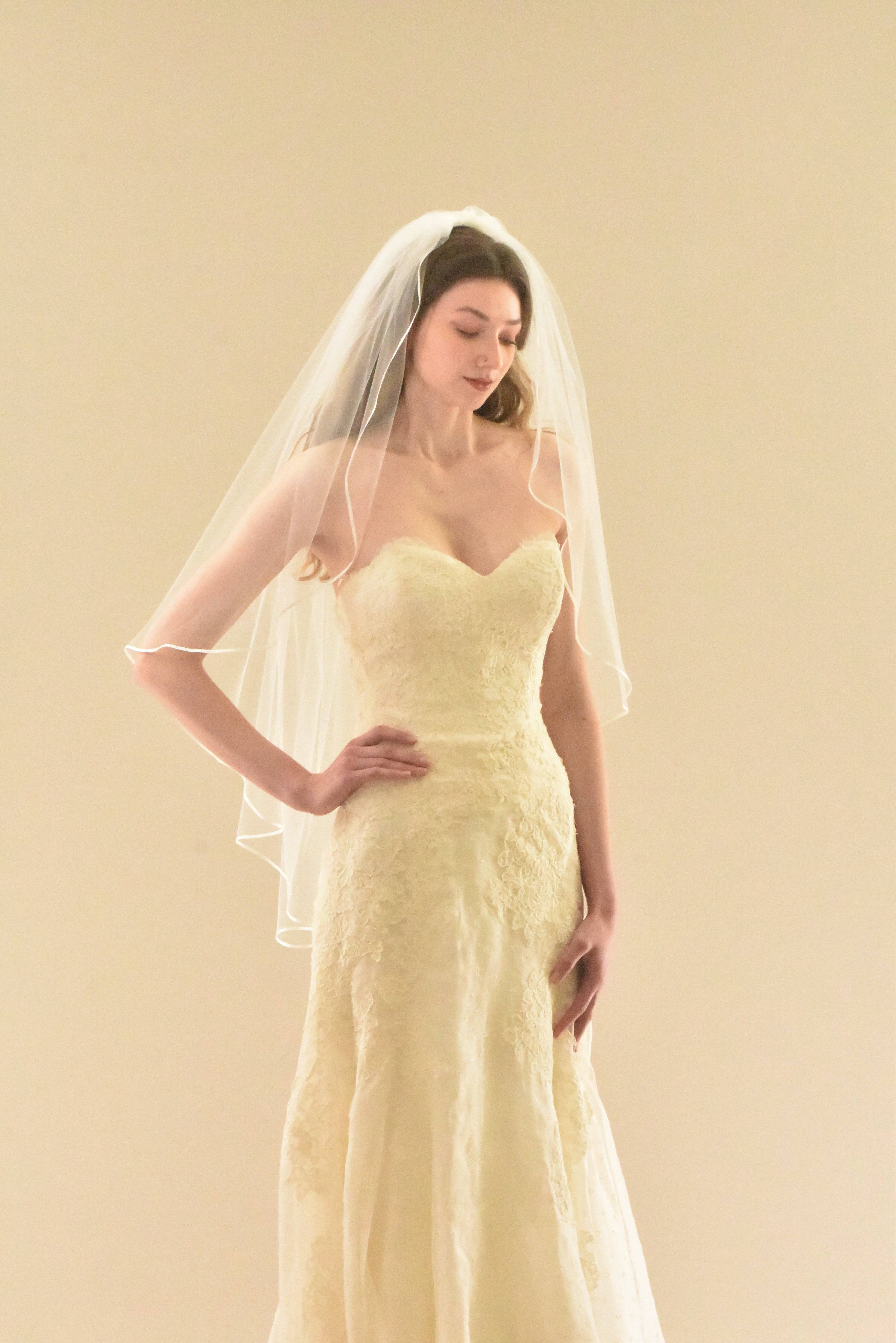Vintage-Inspired Single Tier Fingertip Veil with 1/8" Satin Ribbon Edge