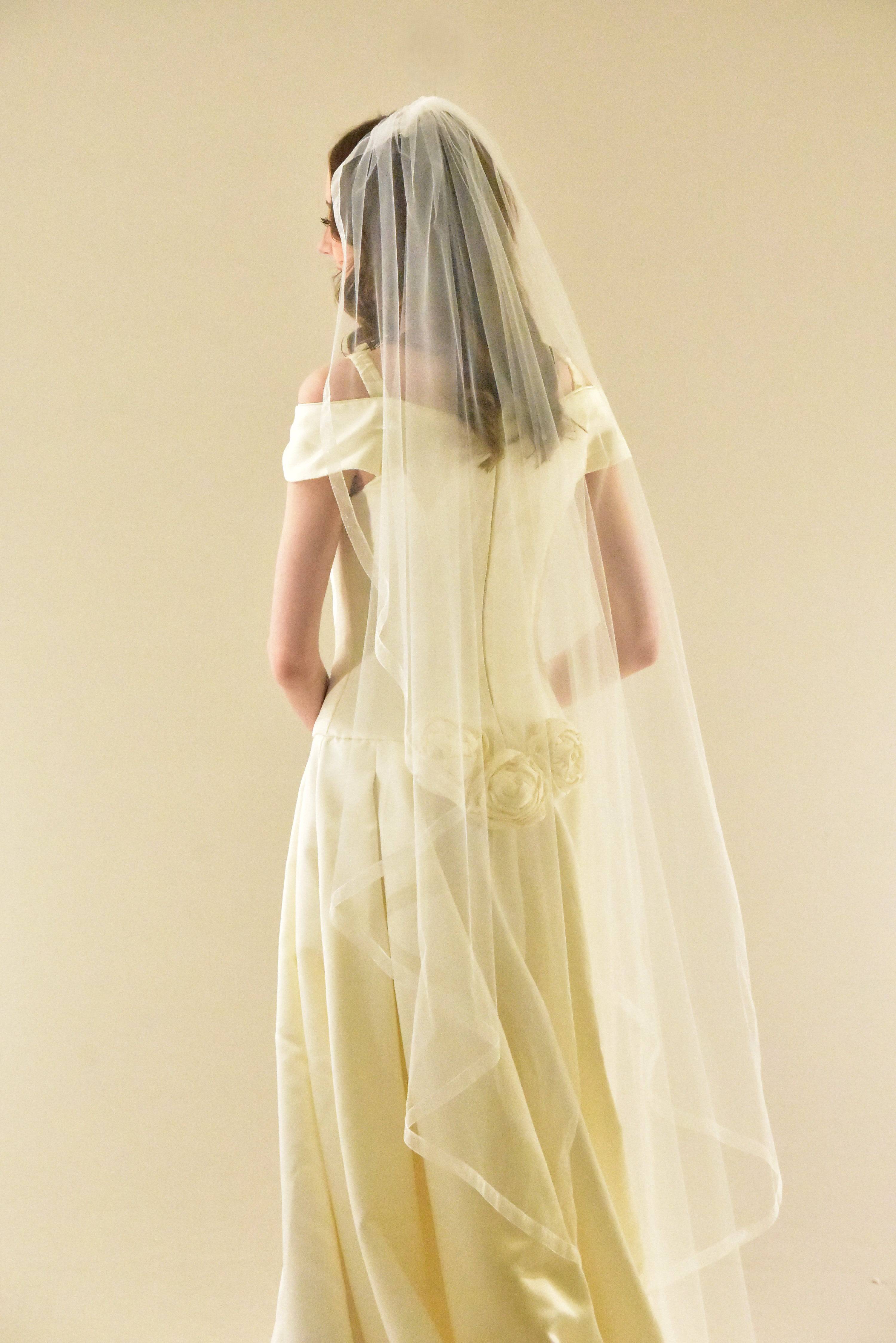 Waltz Length Cascading Veil with Organza Ribbon Edge